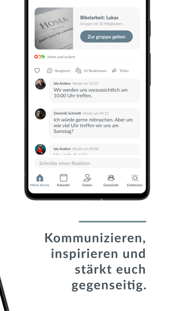 In der App findest du alle Kleingruppen, sämtliche Teams, kannst neue Kontakte knüpfen, findest alle Informationen zu Veranstaltungen und kannst dich mit uns als Kirche vernetzen.