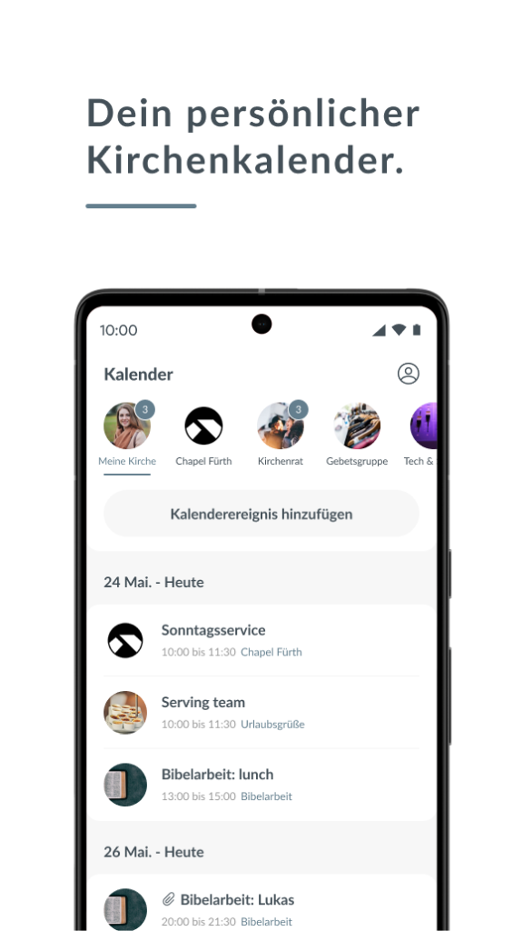 Chapel Fürth App gibt dir einen Überblick über unsere Kirche und kannst dich ab jetzt zu unseren Kleingruppen anmelden.